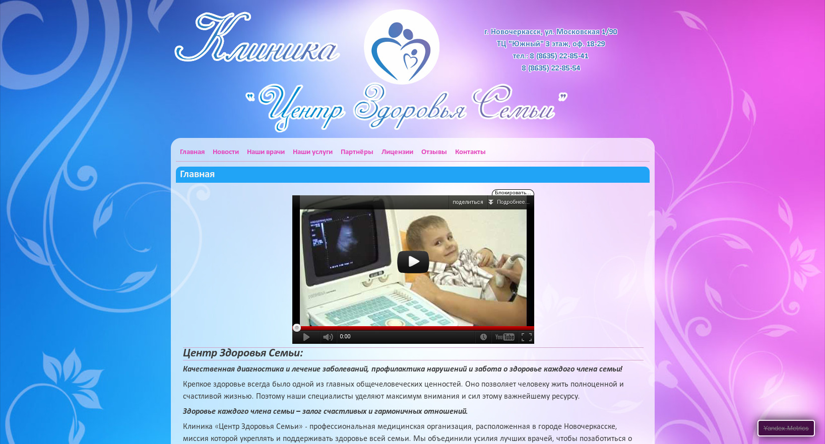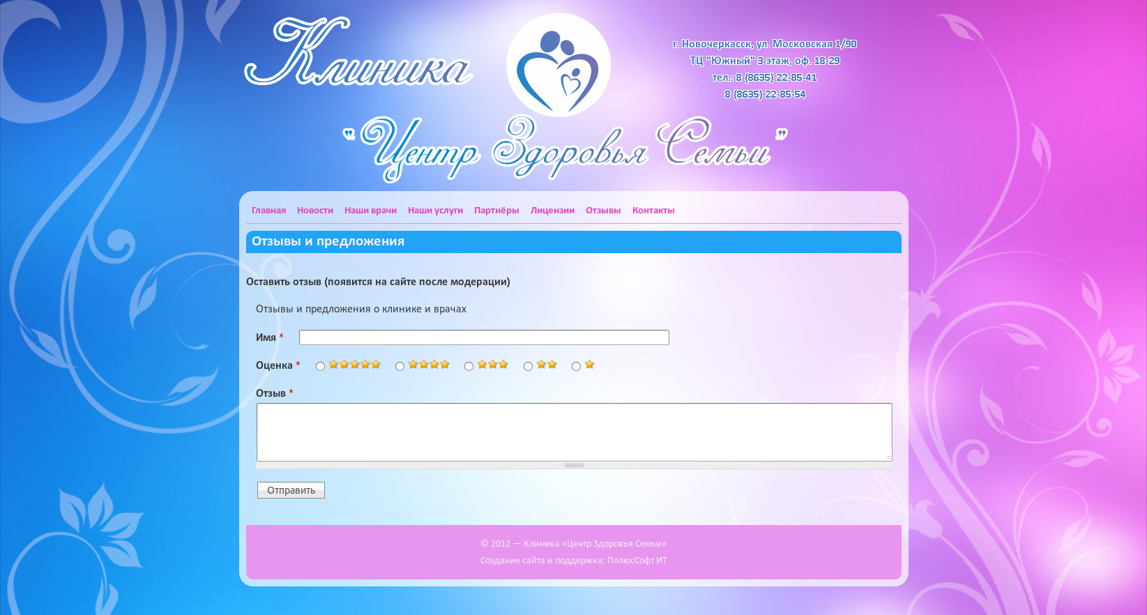клиники «Центр Здоровья Семьи» с дополнительным функционалом в виде отзывов.