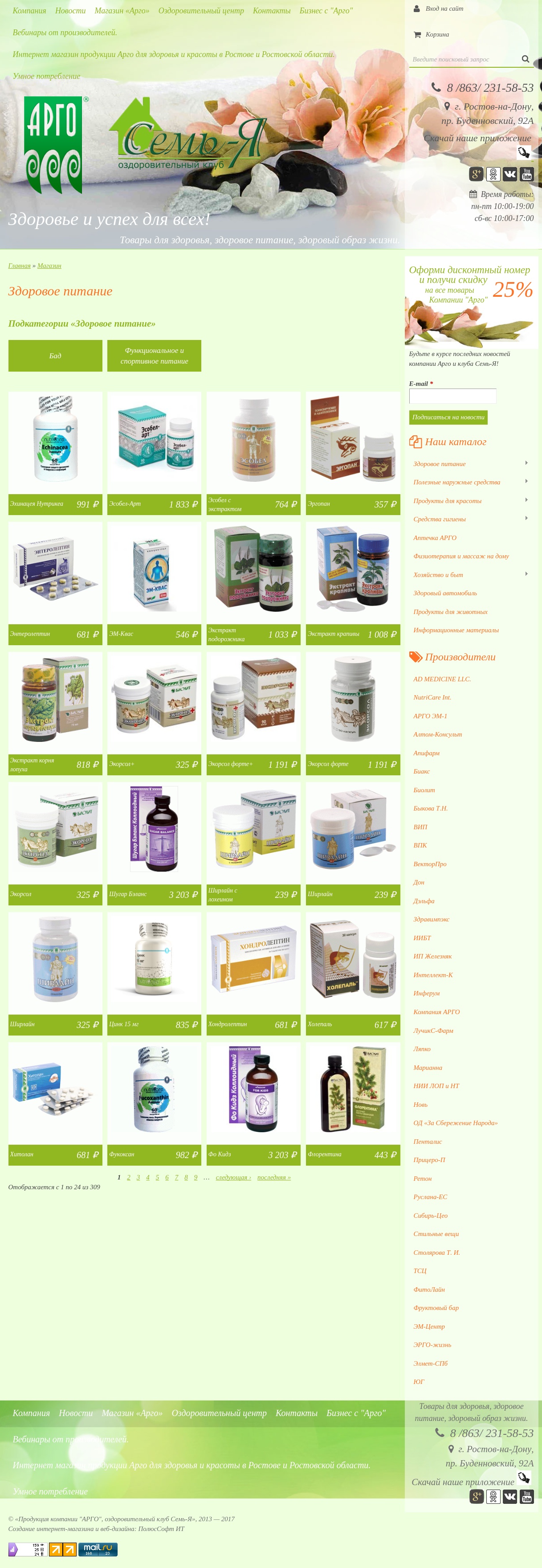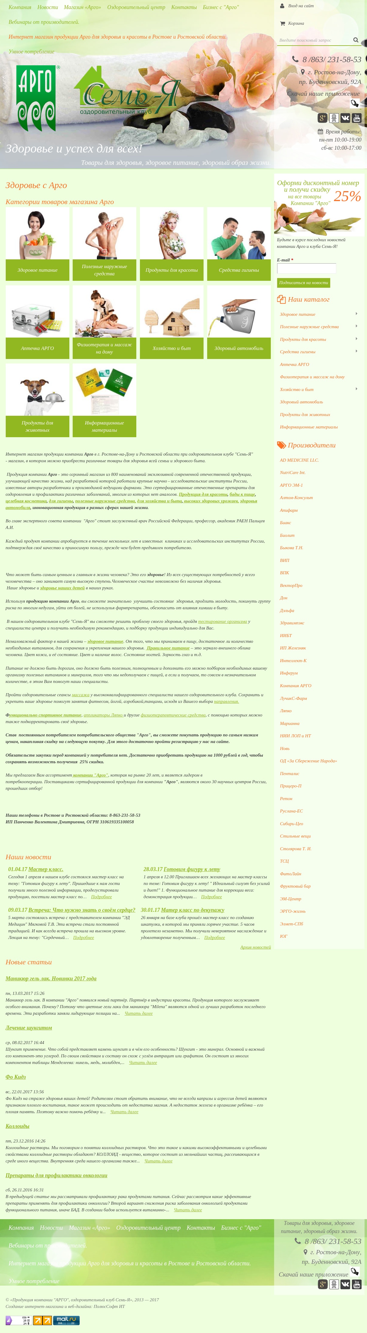 Выполнены работы по созданию интернет-магазина для компании Арго и клуба Семья. Сайт переведён на CMS Drupal с проприетарной, наполнен товарами в автоматическом режиме с головного сайта компании Арго. Для сайта разработан уникальный дизайн, применены эффекты и анимации.