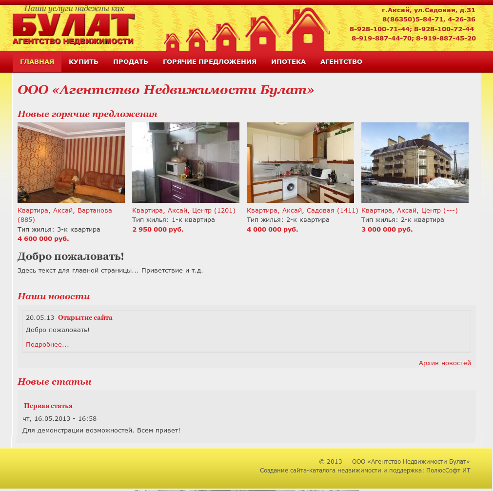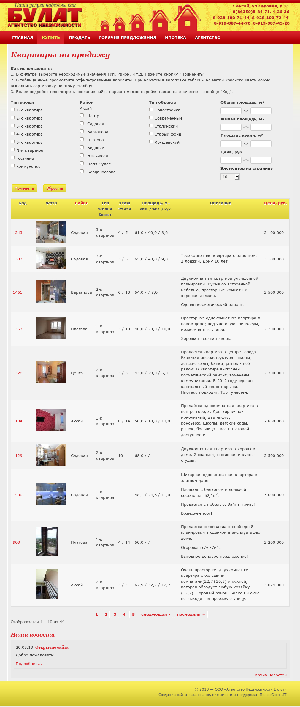Корпоративный сайт каталог недвижимости (квартир, домовладений, земельных участков). В каталоге недвижимости создана форма фильтрации объектов по заданным параметрам, есть возможность оставить заявку на покупку или продажу объекта.