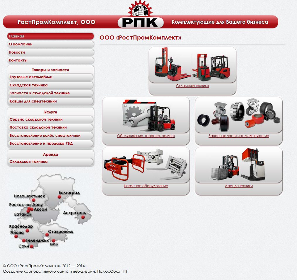 Корпоративный сайт ООО «РостПромКомплект». На сайте представлен каталог товаров и услуг компании. Разработан дизайн сайта.