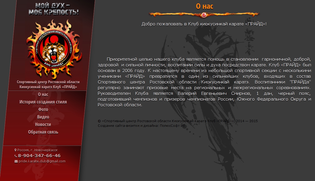 Разработкали сайт-визитку, дизайн сайта и анимированный логотип для клуба «Прайд».